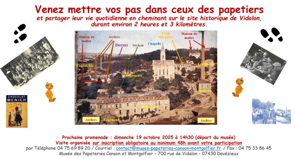 Pour découvrir le site, ses institutions, son organisation paternaliste, les petites histoires ayant émaillé le quotidien, rendez-vous pour une promenade papetière guidée, à 14h30 au musée les dimanche 19 octobre 2025.
